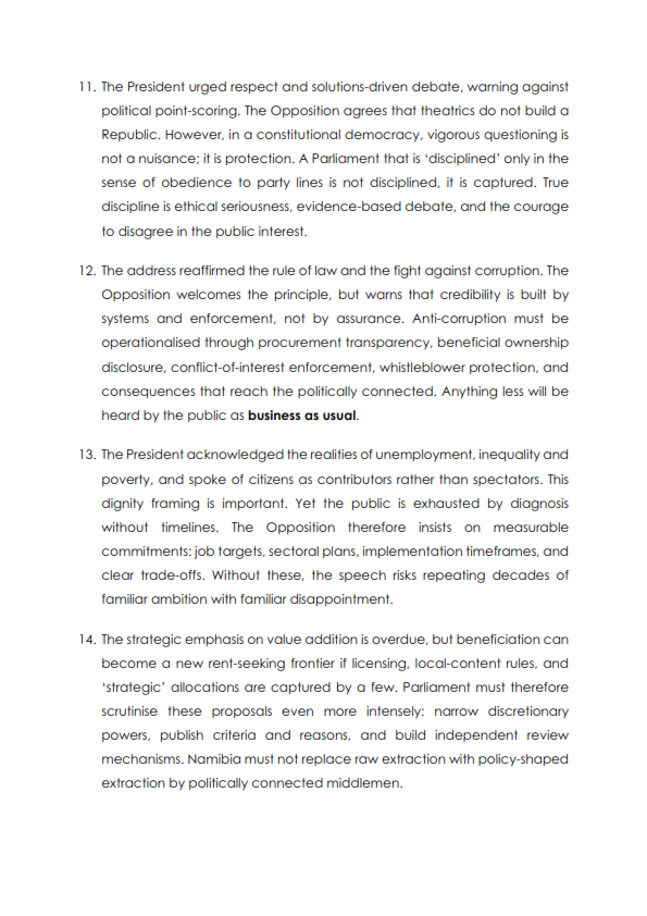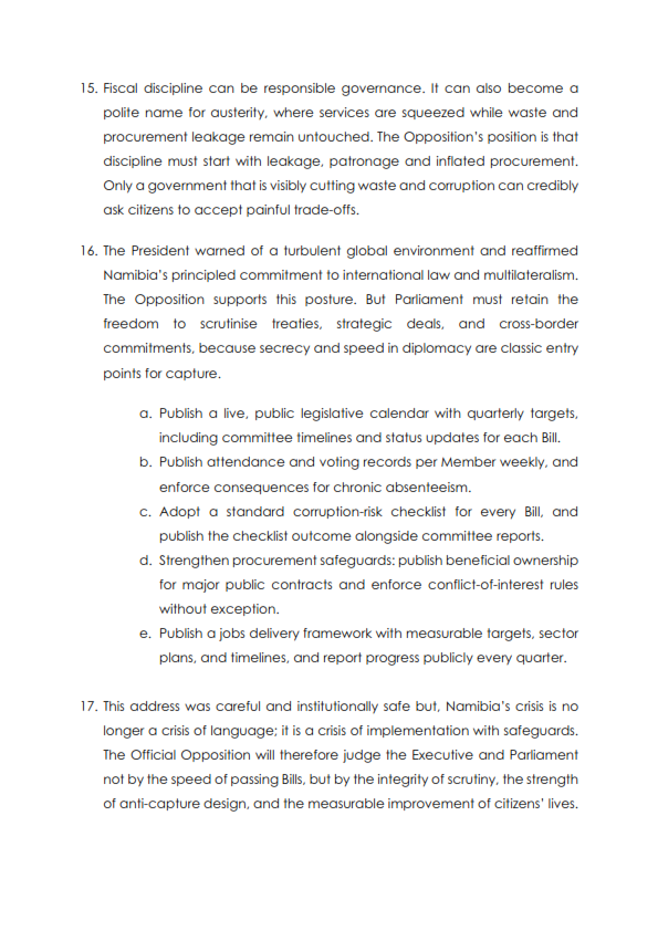 IPC President, Dr Panduleni Itula responds to the address by the Head of State on the occasion of the official opening of parliamentFeb 50 min read