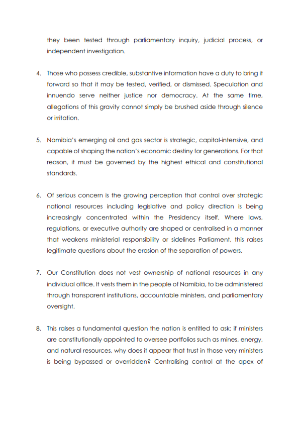 IPC President presents key evidence of irregularities regarding the 1st family's and associates involvement in the Namibia's oil industry